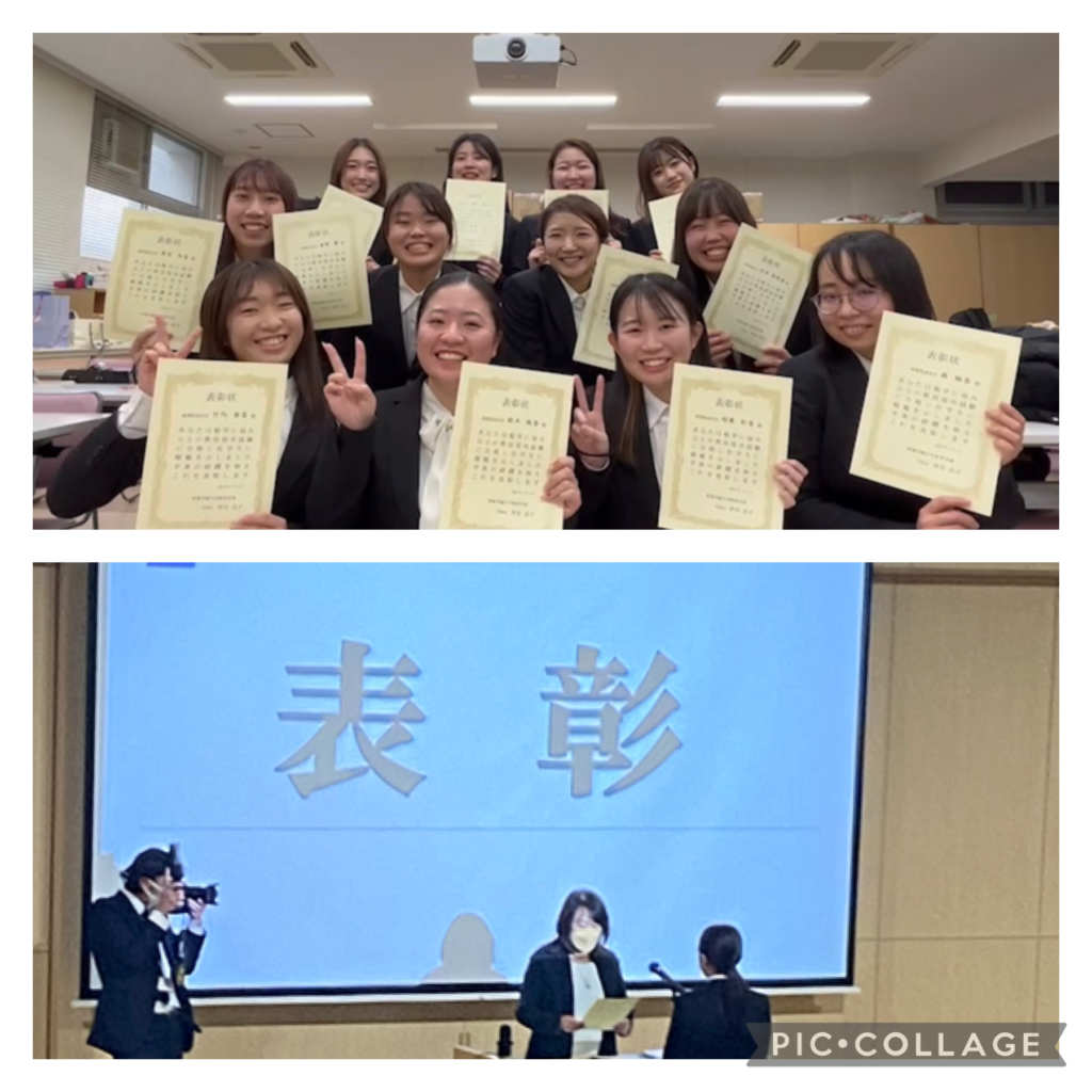 4年生は2月1日の卒論発表会の日に学部長先生から、現役合格を祝して表彰して頂きました。春からは子どもたちの命を守り、心身の健康を育むために精一杯努力するとともに、高いこころざしと東海学園大学卒業の養護教諭としての誇りをもって勤務します。